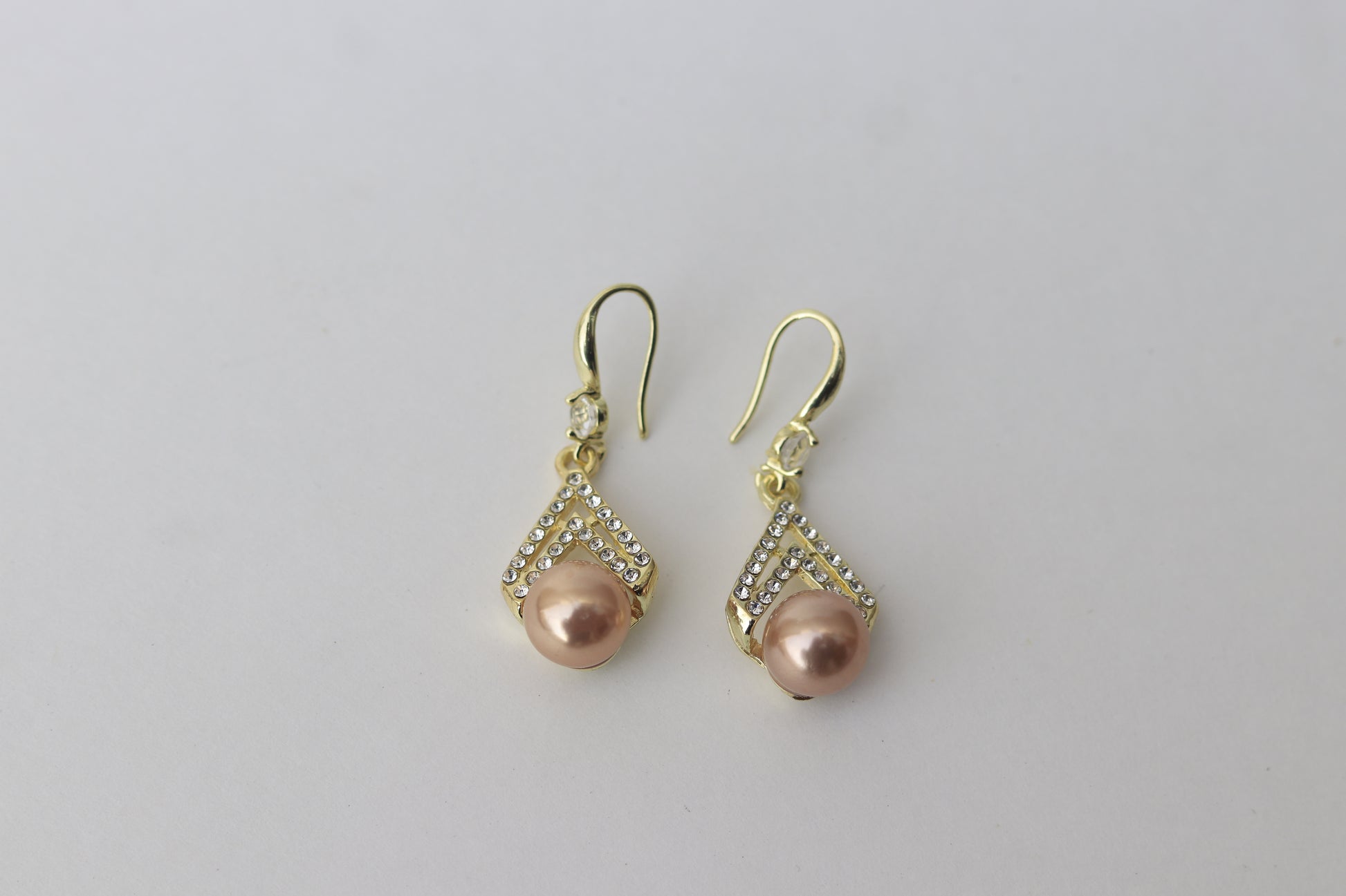 A lustrous champagne-gold pearl drop, adding a classic and luxurious finish